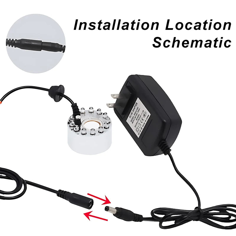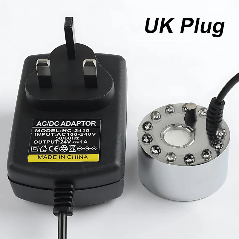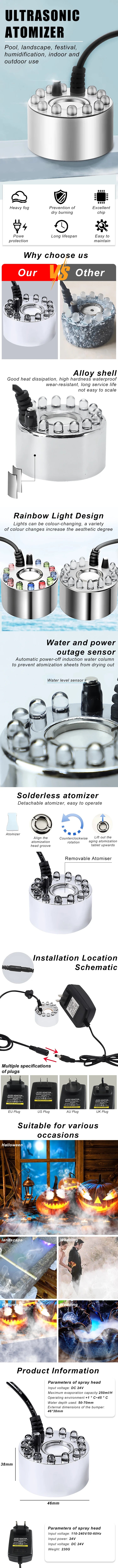 3.Easy to Use:Just put ultrasonic mister in water then switch on power, mist come out. Best water level is 2-3cm higher than sensor on upper edge. Long length power adapter cable satisfy indoor or outdoor fountains, water feature, and office use.